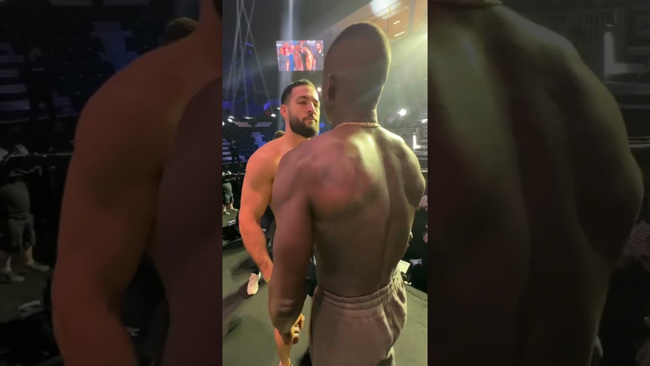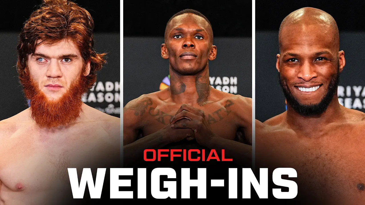 one half of our main event running a three-fight win streak please welcome in the middleweight division the number five ranked nesine imov 185 185 from Nadine imol next to the scales is the former two-time UFC middleweight champion the number two ranked last style Bender Israel adisan 185 185 for Israel Adisa in tomorrow's co-main events in the middleweight division it is the number 15 ranked welterweight and 10 time world kickboxing champion Michael venom page5 18855 for MVP next up making his way to the scale to partake in our co-main event in the middleweight division is the