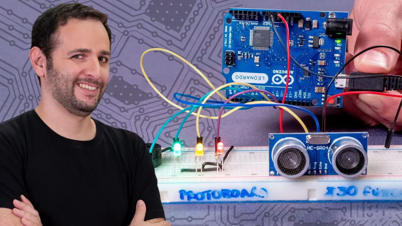 hoje a gente vai aprender a ligar sensores no arduino 8 [Música] na aula passada a gente aprendeu a mandar no arduino demandava de fazer coisas mas é um dado eletrônico quando se apertar um botão e sortear um número e dependendo do número que foi sorteado e ligavam desligava alguns leves então o arduino mandava comandos para fora quando a gente apertar o botão hoje a gente vai fazer diferente um pouco mais avançado a gente vai colocar sensores nele então vão entrar informações complexas mas do hino ea partir dessas informações ele tomar algumas decisões já é um robô bem mais incrementado sobre a gente pensar um pouquinho o que são esses sensores nosso corpo tem um monte de sensores então os olhos são sensores de luz ouvidos os ouvidos são sensores de som a boca tem sensores de gosto de paladar na nossa pele tem sensores de tato de temperatura e tudo isso a gente usa para tomar as nossas próprias decisões então se você vê uma luz muito forte chegando seja fecha os olhos de um barulho muito forte seja vira pra ver o que está acontecendo é que você coloca alguma coisa quente automaticamente retira a mão dali muito rápido se você ver um vídeo do manual do mundo automaticamente seja dá um jovem em riba dessa comunicação entre o seu corpo o cérebro é feita por impulsos elétricos os nervos funciona como se fosse fios que tecem passando você levando eletricidade para se comunicar com cérebro o arguido é a mesma coisa vai ter um sensor o sensor vai pegar por exemplo uma informação de um de luminosidade e manda para o arduino usando eletricidade ele vai variando eletricidade conforme faria a luz mas é bom está pensando putz isso deve ser complicado pra caramba de ler é porque chega um monte de coisa elétrica leonardo eu tenho que me virar com a credencial uma montanha de programação em ver é se tite não tem nada a ver com isso é bem simples na verdade tem coisas que são tão simples quanto aquele botão que a gente colocou na água passada tem alguns sensores são bem mais complexos mas aí tem um truque uma coisa que a gente usa que se chama biblioteca não significa que você tem que na biblioteca e no livro de programação se nem que isso não faz mal a ninguém na biblioteca são recursos super usado em programação então imagina você precisa usar um sensor e pra que ele se conecte se comunique com arduino sem precisar de 5 100 páginas de código de programação aí vez de você programa tudo aquilo alguém vai programar vai deixar um código muito bonitinho todo certinho e na hora em que você for usar aquele sensores e não precisa programa tudo você só chama o código da outra pessoa então você falar ainda por favor leia a bíblia o teca do sensor tal e aí o adriano vai lá buscar aquele código lê ninja você já pode usar o sensor dando o comando dos meninos você não precisa fazer quase nada porque alguém já fez tudo por você então biblioteca é isso é um monte de programação que alguém já fez e que na hora de você que você vai usar você só chama e ao a ventoinha pronta você não precisa nem olhar a biblioteca fechou então é isso que a gente vai usar e não se preocupar com nada para tal a gente escolheu três sensores e vai usar de novo team quer que aquele simulador de arduino pra ao programa usando aquele sensor isso é muito bacana que você pode programar em casa e copiar o que a gente fez mudar e entendendo como é que funciona o primeiro sensor que foi mostrado é um sensor de luz ambiente então ele vai medir a quantidade de luz que existe no ambiente para fazer isso ele tem uma espécie de uma plaquinha solar aqui dentro uma coisa parecida com a placa solar o que conforme battino ele consegue gerar uma pequena corrente ele vai mandar informação a partir disso pro arduino é ele tem três ninhos aqui ou três terminais então um positivo negativo e 1 que ele manda o sinal é ali que a gente vai ler a informação que ele está mandando uma coisa interessante é que o funcionamento desse sensor é muito parecido com um potenciômetro porque não potencialmente a gente faz a mesma coisa a gente pode colocar um positivo um lado negativo do outro e no meio a gente vai tirar a informação do quanto foi girado potenciômetro é do contra está dando de resistência aqui nele então tim quer e não tem um simulador pra esse sensor aqui então que a gente vai fazer a gente vai botar um potenciômetro no lugar fazer o código lá e depois a gente manda para o hino só que na hora que a gente for fazer fisicamente a gente coloca o sensor foi dada ao ar do hino aqui a próton word um potenciômetro que vai funcionar como se fosse um sensor de luz aqui um led oled tá ligado claro num resistor e e esse resultado vai lá número 9 no digital aqui do arduino tá em compensação o potencial o metrô o primeiro terminal está ligado negativo o último terminal está ligado no positivo e no do meio onde a gente vai tirar o sinal não está o sinal ligado no analógico do arduino na primeira porta analógica na a zero hora que bacana a gente ainda não usou a porta na lógica do domínio lembra que eu falei que ela consegue vários valores um jeito bem detalhado é isso aí à porta na lógica do arduino ela lê valores de zero até 1. 023 então se a gente pegar aqui o potencial o metrô se potencialmente tiver no mínimo é mas no botão do rádio no mínimo ele dá o valor zero se tiver no máximo ele dá 1. 023 se tiver na metade vai dar mais ou menos a metade de 1.