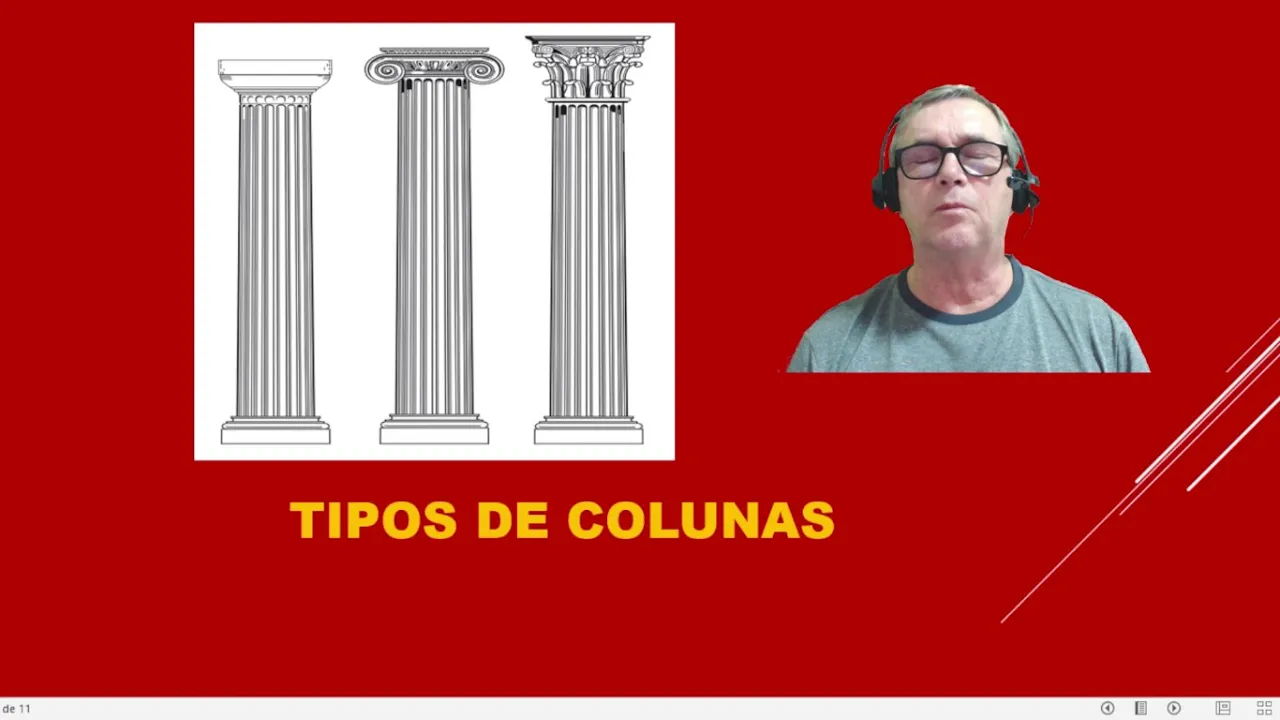 com duas platibandas representa a força o primeiro vigilante irá redigir este diapositivo estamos mostrando aí com acerto a parte superior da coluna a histórica em um monumento à Grécia coluna Corinthians deve que é uma coluna as trabalhadas representa a beleza segundo vigilante irá bife vamos ver a narrativa do irmão formas elegantes e proporções delicadas um altura 10 vezes seu diâmetro do fuste liso granito o bastante canelado mármore capitel com folhas de acanto base presente entablamento trabalhado com arquitrave com três platibandas representa beleza segundo vigilante irá abiff mas não apresentamos nem a coluna Toscana nem a