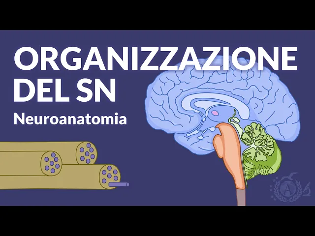 Anatomia, sistema nervoso. Se nei precedenti video abbiamo analizzato l’aspetto microscopico del SN, andiamo adesso a vedere come sono organizzate a livello macroscopico le strutture che consentono di ricevere le informazioni ed elaborare le giuste risposte. Innanzitutto, l’insieme degli assoni dei vari neuroni neuroni, assieme al loro eventuale rivestimento di mielina, costituisce la fibra nervosa, divisibile in afferente (o sensitive) ed efferente (o effettrici) a seconda della direzione in cui viaggia l’impulso.