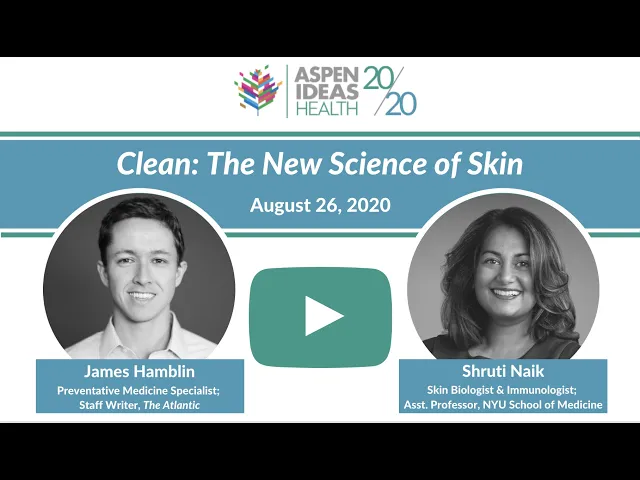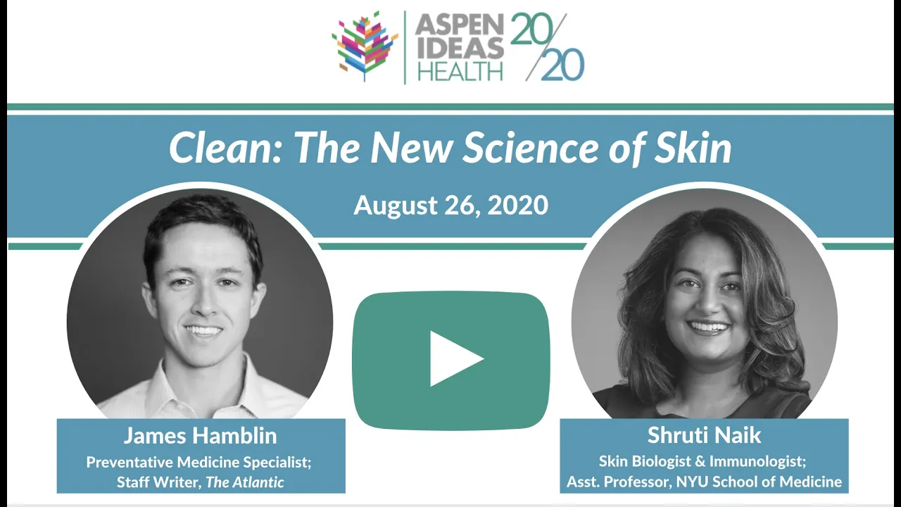 [Music] good afternoon and welcome my name is deb cunningham and i'm the director of strategic partnerships for the aspen ideas health program here at the aspen institute on behalf of all my colleagues thank you for joining us as many of you know the pandemic prevented us from gathering together live in aspen this summer but we've pressed on virtually hosting an ongoing series of informative inspiring conversations between leading health experts advocates scientists innovators artists and many others today we're thrilled to host dr james hamblin author of the new book clean the new science of skin and