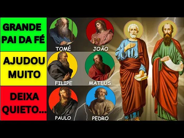 Fala aí pessoal eu sou o Anton eu sou pessoa e vamos começar mais uma tierlist né agora sobre os apóstolos os apóstolos de Cristo é isso então é aquele esquema né todo mundo já deveria ter conhecido já conhece os 12 a gente botou Matias que é o que entrou né Depois de um de umi um um desvio no roteiro né o Matias teve que entrar e a gente colocou o Paulo também que Tecnicamente não apó mas é o apóso dos gentios né exato exato E não daria para falar sem falar dele exato ia ficar um