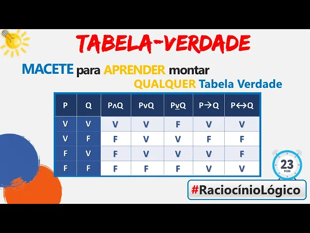 lógico são iguais então o resultado é verdadeiro nos outros dois casos vff ver eles são diferentes o resultado vai ser falso pronto fim a gente montou a tabela verdade de todos os conectivos lógicos viu como é fácil viu como é tranqüilo gostou desse truck agora então quando você chega lá na sua prova antes de começar a prova escreve os símbolos escreve os coletivos lógicos faz as modificações quem você vai conseguir resolver diversas questões que te pedir em esse conteúdo fechado bora treinar esse conteúdo vamos ver se isso funciona mesmo vem comigo vamos ver três questões