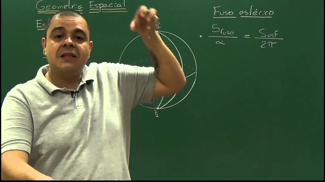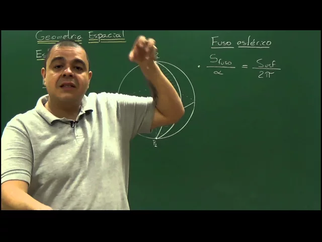 eu quero é calcular a área da superfície esférico delimitada por esses dois arcos aqui dos meridianos calcular esta área sobre a superfície da terra é como se nós tivéssemos uma melancia no formato esférico cortasse uma fatia e calculasse a área da casca da melancia na matemática nós chamamos esta região sobre a superfície esférico difuso ou isso como fuzis um cálculo da área do fuso é simples é uma regra de três porque nós percebemos que a área do fuso é uma fração da área da superfície essa regra de três mais sedada levando em conta um ângulo