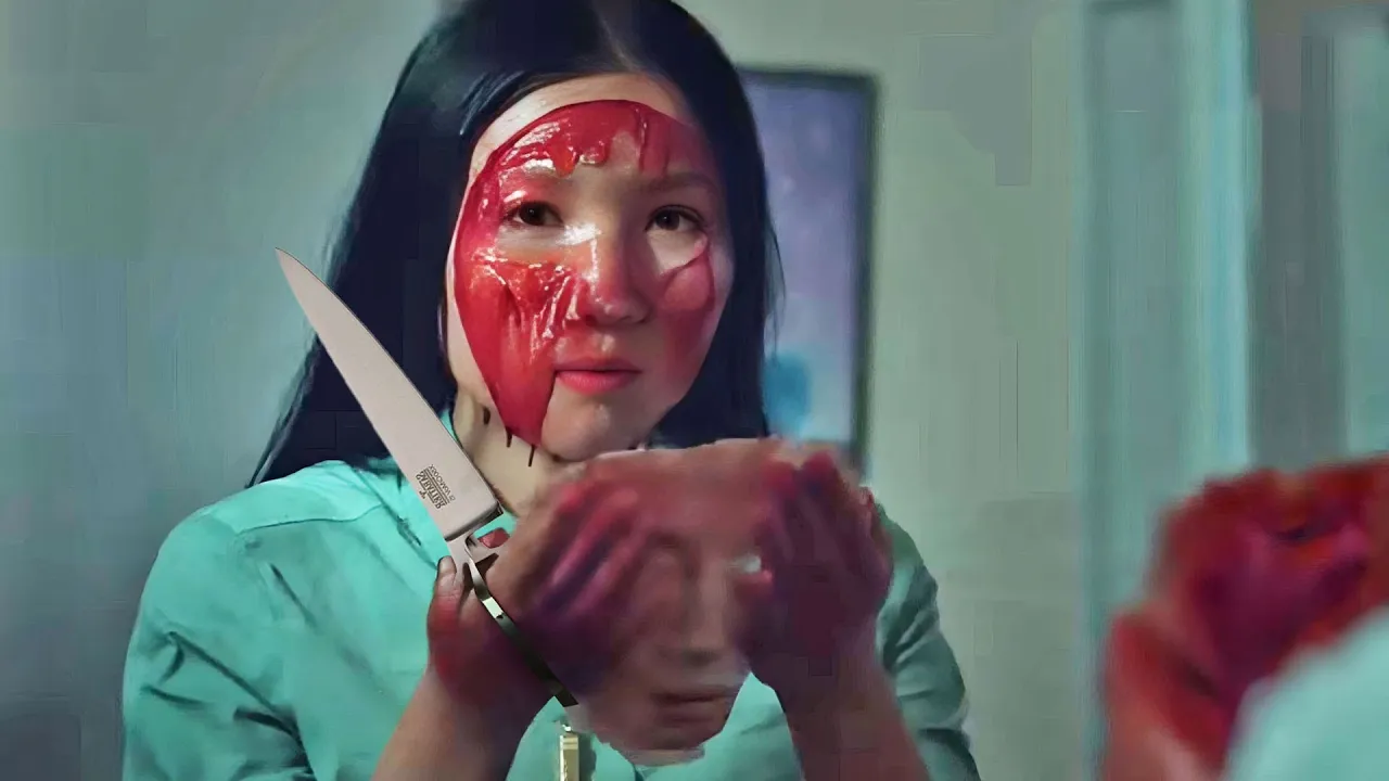 streaming in his rage he abruptly pushes her onto the bed and begins forcing himself on her Momi resists at first but eventually becomes silent as the man continues moments later onam notices something strange behind the mask and removes it from her face he then notices that mom's face is completely covered in bandages implying that she has had plastic surgery he starts to freak out and questions why she took such a drastic step but Momi suddenly flips the man over and grabs an ice pick from a nearby table shockingly she begins stabbing him in the neck