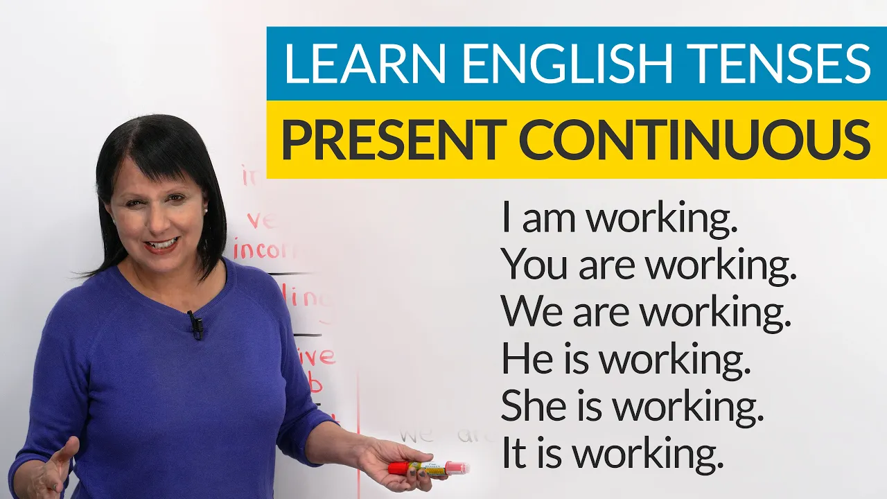Hi, I'm Rebecca, and welcome to this class on the present continuous tense, which is also called the present progressive tense. Now, this class is part of the engVid series on English verb tenses. So, the present continuous tense is a basic tense.