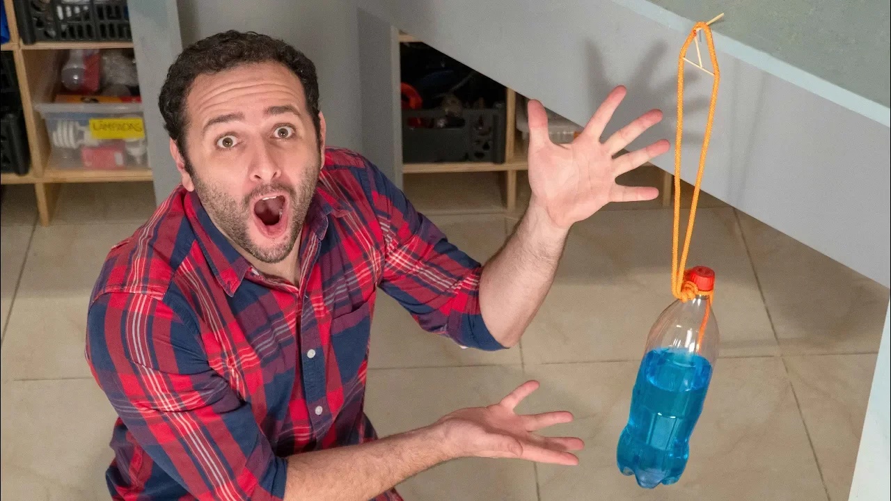 hoje eu vou mostrar pra vocês uma experiência muito fácil mas também muito difícil neste mês quando bastante na internet um vídeo em que um alguém caras e consegue pendurar uma garrafa pet no hálito de fósforo jeito muito doido eu não consigo produzir um vizinho que não posso ter problemas com direitos autorais então deixei um link preciso ir lá no meu twitter o link decidido em baixo então se quiser acessar lata no meu perfil no twitter muita gente pediu pra tentar reproduzir o manual do mundo e mostrar por que isso acontece então vamos primeiro tentar reproduzir