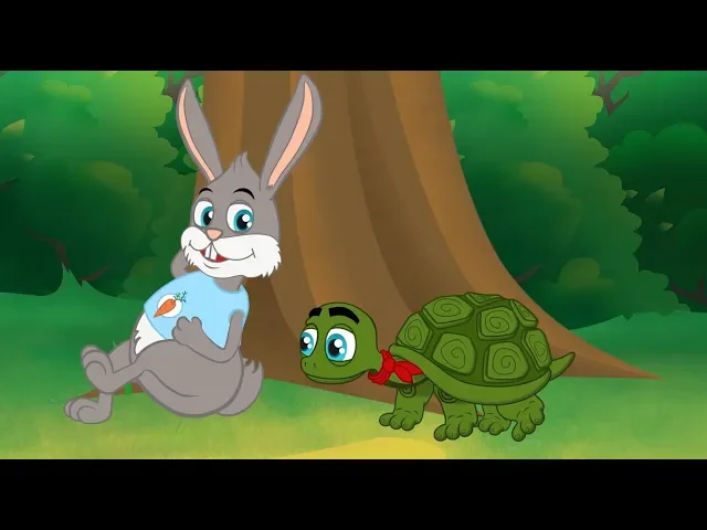 ele estava tão confiante Que iria ganhar a corrida que caiu no sono a tartaruga por sua vez continuava no seu Passo vagaroso mas com grande confiança em si [Música] finalmente Então ela chegou perto do coelho e viu que ele estava em um sono profundo mas não parou e prosseguiu na sua jornada [Música] um pouco depois o coelho acordou quando Ele olhou em volta não conseguiu ver a tartaruga não estou vendo a tartaruga talvez ela tenha desistido da corrida deixe-me ganhar logo então o coelho prosseguiu lentamente para o ponto de chegada olha o que ele vê