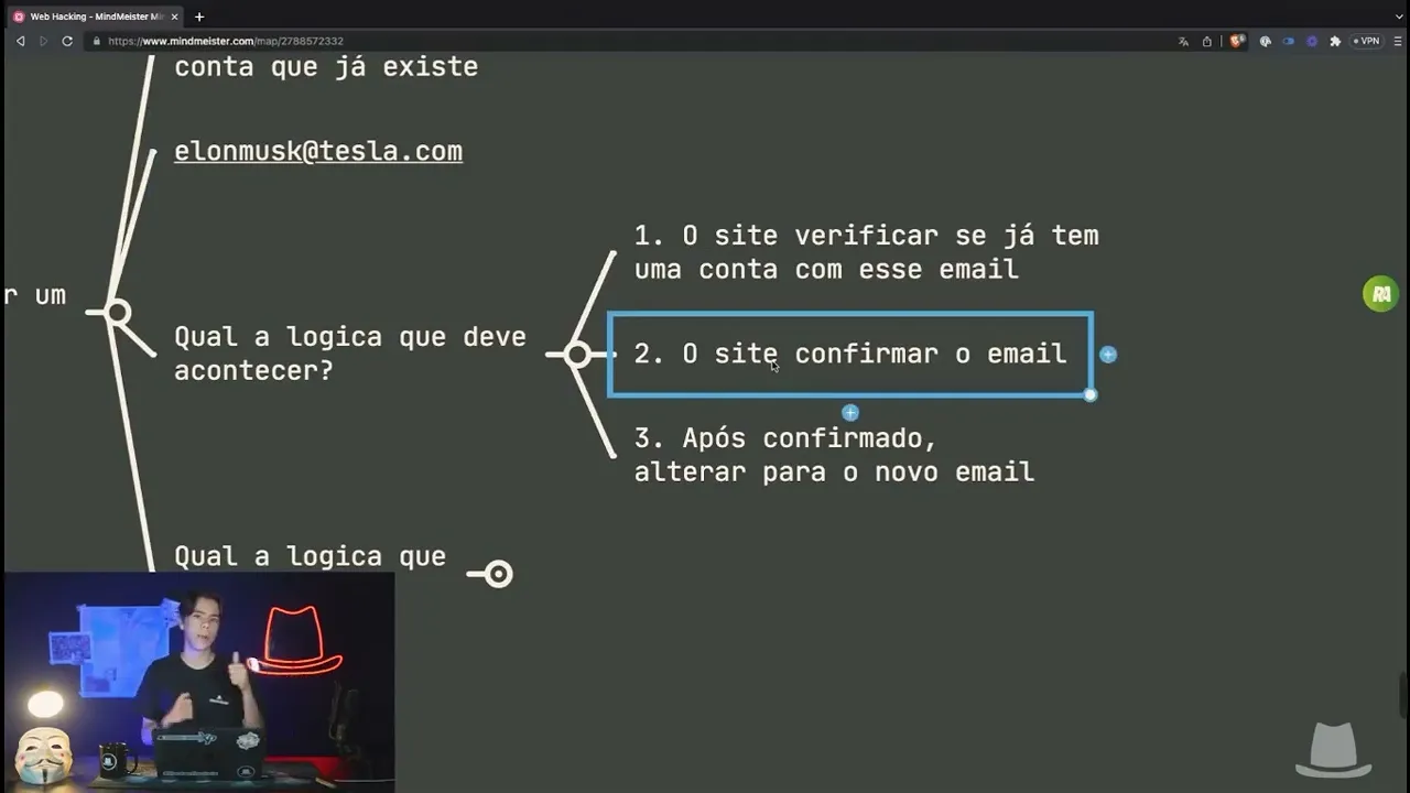 elonmusk @ Tesla você sobrescreve a conta do Elon musk com a sua conta e quando ele tentar logar um do musk for fazer login a senha vai ter incorreta porque agora o e-mail da conta que era dele agora é Nossa que a gente trocou o e-mail dessa conta mas com uma falha de lógica não era para ter acontecido o programador deixou a gente fazer isso e esse é o exemplo de uma falha de lógica Esse é o exemplo de uma falha que não mexe não mexe Tecnicamente com códigos mas sim com a lógica de alguma