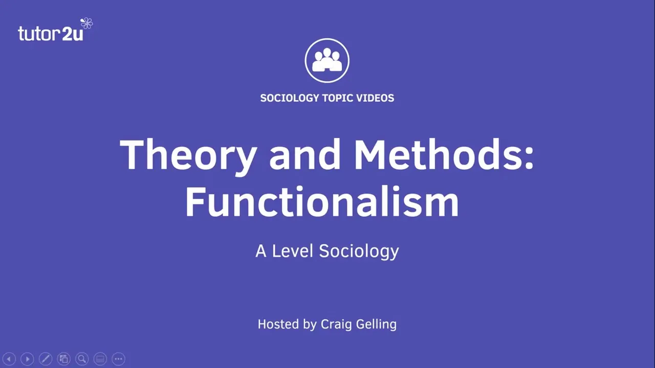 welcome to this T to you sociology topic video on Theory and methods looking at the theoretical approach of functionalism for those who studied some sociology functionalism is one of the key theoretical approaches that is discussed on the a level specification but what are the key concepts of functionalism and what are the key contributions of functionalism to our understanding of society functionalism is a structural consensus Theory one that believes that social institutions such as education media family and religion shape the behavior of individuals in society through passing on society's norms and values they suggest that in