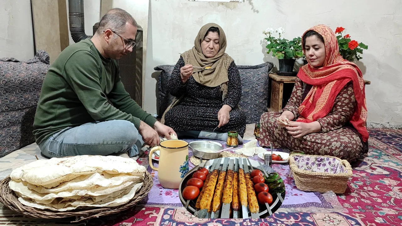 Iran Village Life on a snow Day | Wood-Fired Tandoor & Juicy Kebabs ππ₯