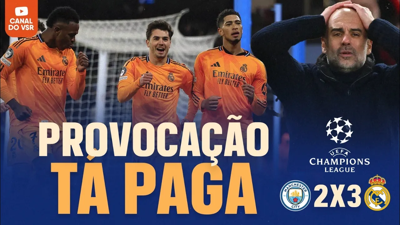 Fala galera ligado aqui no canal do vsf chegando para mais um vídeo tema do vídeo agora Real Madrid ganhou dentro do EAD Stadium pela primeira vez e dessa vez não foi Pacto não vamos falar sobre isso já deixa o like se inscreve no canal você faz isso aqui embaixo aqui embaixo também tem o canal ali para você fazer os comentários pra gente trocar uma ideia tô gravando esse vídeo aqui na terça de noite depois da vitória do Real Madrid por 3 a 2 sobre o Manchester City de virada jogo válido p repescagem das oitavas de