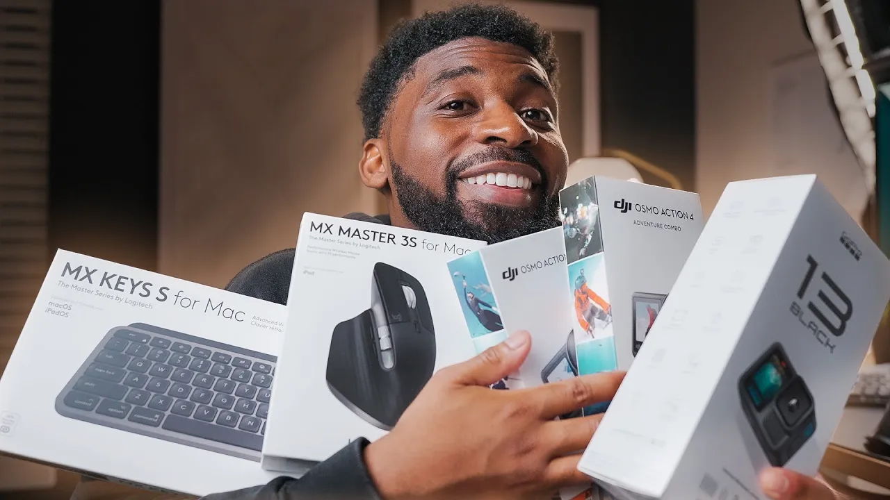cameras the uh the osmo action 4 and the osmo action 5 Pro amazing right here I love these I'm not doing much Action Sports but I love these for just getting quick content and capturing behind the scenes I just feel like these little cameras with the amazing stabilization is just invaluable I love these These are these are fire and arrow um aside from that we got some stuff from Logitech which I just freaking love so much we got the MX Master 3s Mouse for Mac I'm already using one you can see right here I got