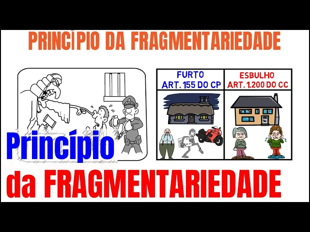 já sabe o conceito do princípio da fragmentariedade Penal vamos voltar às questões do início da aula na primeira situação houve violação do patrimônio de Astrogildo pois funil subtraiu o seu bem móvel que era moto e o cartão de crédito logo fura News cometeu o crime de furto previsão do artigo 155 do Código Penal já no segundo exemplo temos uma tosse violenta pois Manuela violou a posse de Juca e ainda ameaçou agredi-la neste caso a proteção é dada pelo Direito Civil temos um esbulho previsão do artigo 1200 do Código Civil isso ocorre devido ao princípio da
