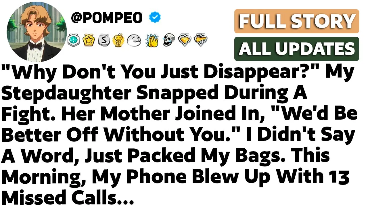 why don't you just disappear my step-daughter snapped during a fight her mother joined in we'd be better off without you I didn't say a word just packed my bags this morning my phone blew up with 13 Miss calls something felt off the moment I walked into our living room this Sunday morning the house was unusually quiet but that wasn't it my eyes swept across the room trying to place what was wrong then it hit me all our family photos looked different I stepped closer to the large frame above the fireplace the one from our trip