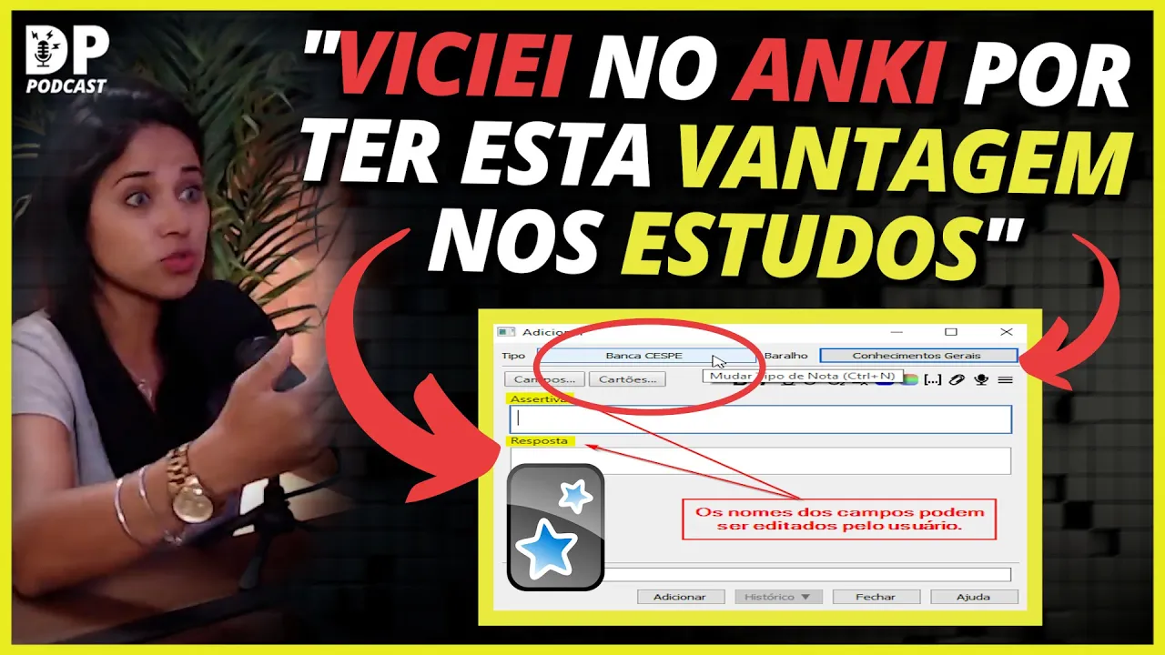 só que ele tem um porém comer para rua Viviane tinha que brincar na rua imagina que aqueles papéis não dava aí conhecia o anki então isso aqui foi um dos meus materiais o principal de estudo assim ouvindo as vídeo-aulas lá da plataforma e revisando antes a todo tempo eu tava revisando e vicia parece um joguinho porque eu não passei nem prova mas reações da mentoria deixou aluno Mas qualquer detalhe André viciou mesmo no anki e ela uma vez eu lembro que ela chegou professora mas como é que eu faço para conciliar né acho uma das