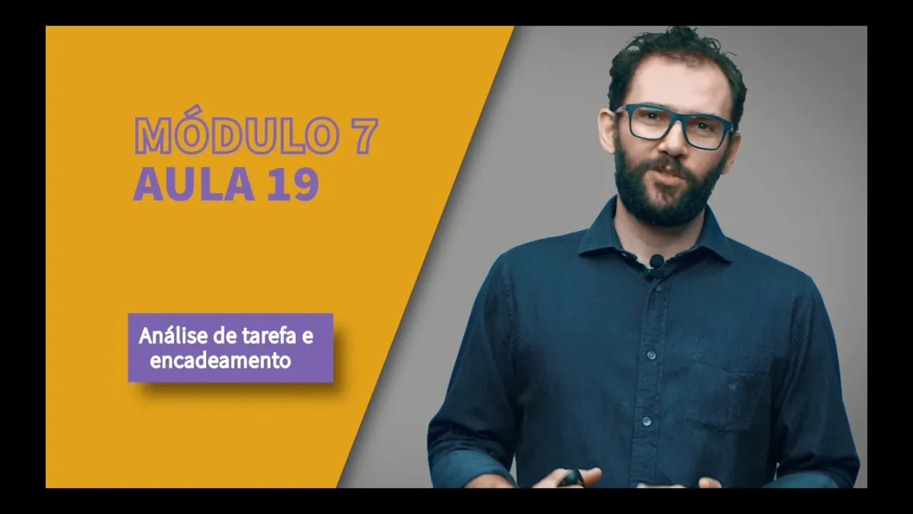 É esse profissional que supervisiona o caso, que conhece as estratégias para fazer uma análise de tarefas. Algumas delas vão ser mais simples, outras vão ser mais complexas, e algumas vão exigir algumas estratégias adicionais, que só esse profissional teve a formação para poder fazer. O primeiro tipo de encadeamento, encadeamento para frente.