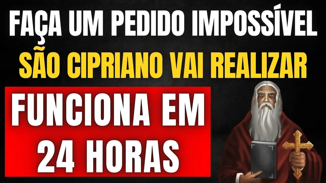 E aí E aí o Olá gente tudo bem sejam muito bem-vindos ao canal e no vídeo de hoje eu quero compartilhar com vocês uma poderosíssima oração de culto a São Cipriano que irá realizar em apenas 24 horas aquele seu pedido que estava guardado no fundo de seu coração mas que você já tinha desistido simplesmente por achar ser muito difícil ou até mesmo impossível de realizar e esta poderosa oração ao santo mago vai usar poderes sobrenaturais do Universo para que o santo e te ouça e venha realizar um milagre impossível em sua vida acredite quando o