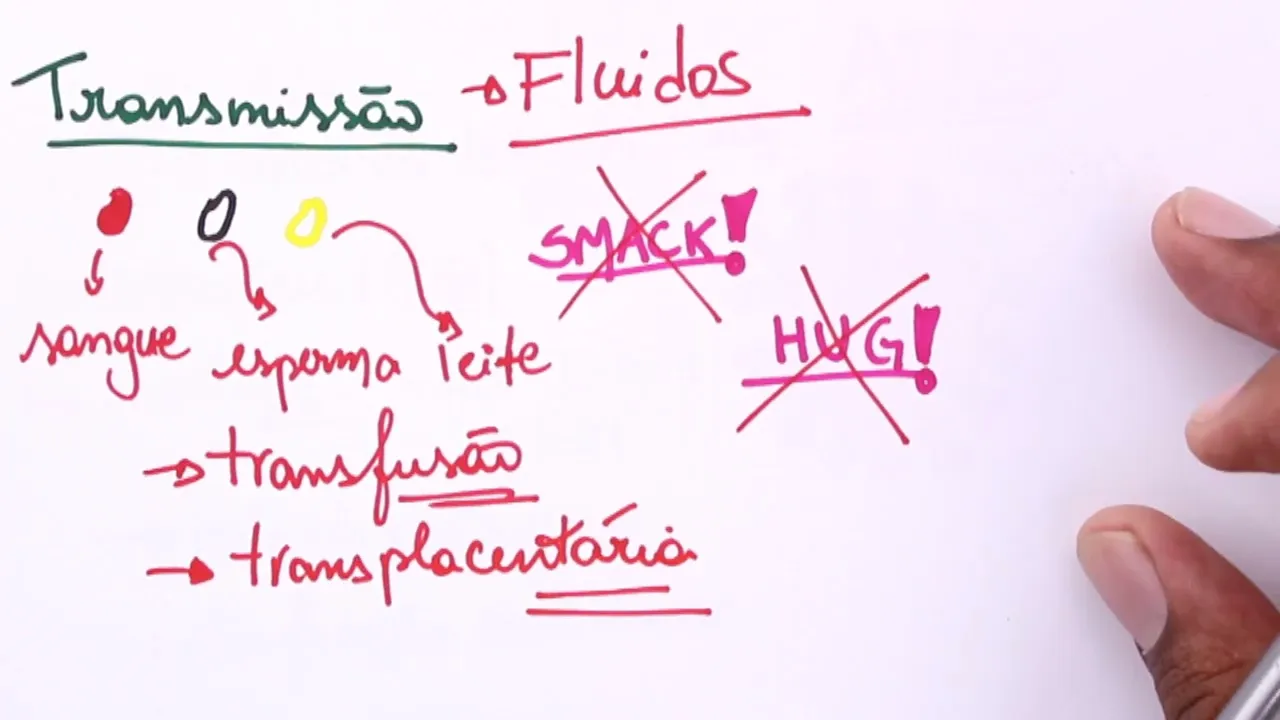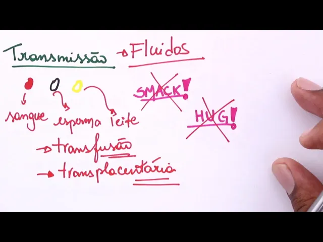 a grande o centro assim o grande mote da da aides quando a gente tá falando dela é ser um causar uma disfunção no sistema imunológico certo então esse vai ser o centro dessa síndrome é isso que ela vai atingir o nosso sistema imune muito bem como essa trans transmissão acontece Então galera a transmissão pode se dar de algumas maneiras tá primeira maneira dela é através dos fluídos é assim que a ides é transmitida pelos fluídos então eu posso ter pelo sangue a transmissão acontecendo eu posso ter pelo esperma não é verdade já que é um