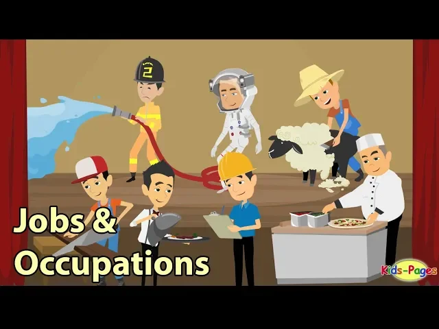 [Music] welcome to kids pages improve your vocabulary and learn new words about jobs and occupations actor an actor acts in a play artist an artist makes art astronaut an astronaut explore space [Music] bus driver a bus driver drive buses [Music] taxi driver a taxi driver drives a taxi business then a businessman is good at dealing with business carpenter a carpenter make things from where cashier a cashier takes an or gives out money coach a coach turned a 40 computer programmer a computer programmer creates computer programs [Music] chef a chef prepares and cooks food Baker a