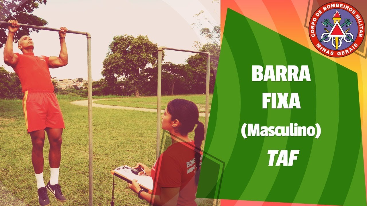 e o teste de flexão estática na barra fixa é realizado por mulheres que desejam ingressar no Corpo de Bombeiros Militar de Minas Gerais e tem o objetivo de medir indiretamente a força muscular de membros superiores por meio da realização de isometria em flexão na barra fixa pelo maior tempo possível a prova é realizada em uma barra de ferro ou de madeira medindo no máximo 1,5 polegadas ou 3,8 cm de diâmetro para o início do teste utilizando um banco ou outro material de apoio à candidata deverá se pendurar na barra fixa com as mãos em pronação
