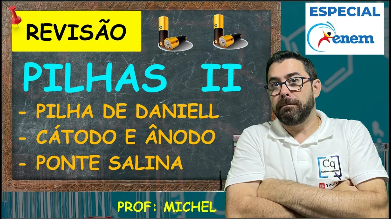 empurra esse teu dedo no like compartilha Vamos bater nossa meta das 100 curtidas para que a gente possa prosseguir nessa Mega revisão eu queria hoje que se vocês pudessem me dissessem o que é que vocês estão achando dessa revisão se tá bom dessas dicas talvez de matérias que vocês gostariam que aparecesse a gente vai ver agora pilhas dois depois vai ter pilhas três que é só só só exercício de pilha mas vamos trabalhar logo porque hoje é um ótimo dia para você aprender química bora galera a primeira coisa que eu queria é porque Pilha Por