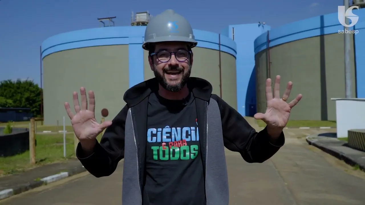 o [Música] Olá pessoal não somos a ciência em show de hoje a nossa Aventura numa gigante Mundial gigante mesmo porque viemos na estação de tratamento de esgoto da Sabesp aqui na cidade de São Paulo Sabesp companhia de saneamento básico do Estado de São Paulo a maior da América Latina nós vamos saber hoje com a Sabesp trata o esgoto da cidade de São Paulo e da grande São Paulo vem com a gente e a primeira etapa do tratamento de esgoto acontece aqui no gradeamento né porque aqui deveria chegar o famoso número 2 o cocô e o