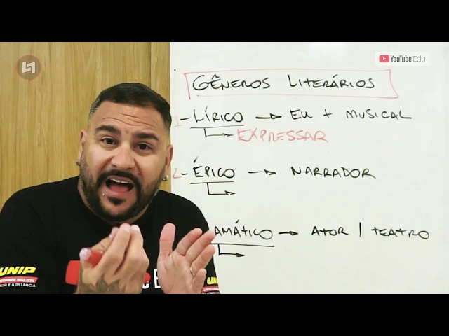 de um gênero chamado narrativo então esse gene chamado de época também pode ser conhecido como gênero narrativo ok e ele disse que também tinha o tipo de texto que era próprio para o teatro onde os atores encenavam peças entre eles têm um tipo de gênero que é feito para ensinar e aí ele disse o nome desse jeito ele vai ser dramático então gênero para ensinar dramático gênero para relatar épico gênero para expressar lírico que eu quero expressar emoções do meu eu doutor eu uso o meu eu mas a musicalidade ea soma desses dois elementos formam