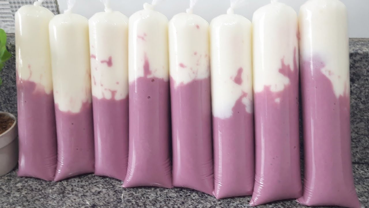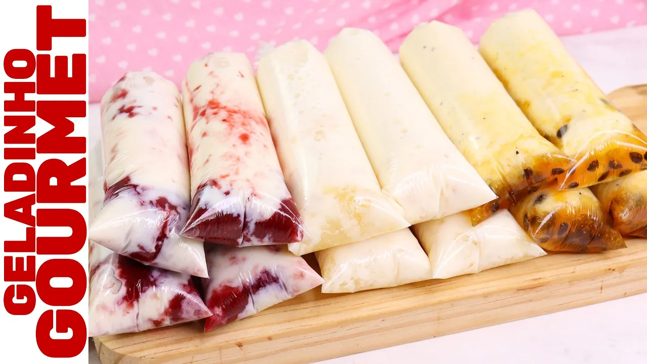 I'm going to do the same thing with the other bags too, now that we've already put the jelly in the bag, just fill it with base cream, our base cream It's already a powdered milk-flavored cream, as it's a more liquid cream, this time I'm going to use the funnel, I'm going to fit the funnel here a little bit more because I don't want this jelly to mix with the milk And then I fill it with the milk little by little as I fill it, I will also lift it a little then we just remove the funnel and take the measurement here to remove the air and turn it to tie then we cut the excess here Look how beautiful it looks when I go So when we get to the end, I like to put the other bag here just so we can check if they are the same size Because even measuring Sometimes there is a little difference now answer me, how can you resist A wonderful ice cream like this, our next ice cream is coconut with pineapple a delicious and very traditional combination of flavors for her I will use pineapple in syrup and we already have the recipe for this pineapple in syrup here on the channel I will leave the link below in the video description for you to taste our base I I'm going to use grated coconut and if you want, you can also use a little bit of coconut milk to make the coconut flavor more present in this product. My base is ready here . If you want the texture of grated coconut in this cream, you can blend it in a blender, here I left the coconut texture because I really like it And then the process is the same as other ice creams, open the bag, add the pineapple pieces and then fill with the cream then just remove the funnel, close it, turn it And tie it up, you want to start your production and you have no working capital Don't forget to click on the Zip link that I left below in the description of this video, our next ice cream flavor is the lemon tart flavor for he I'm going to use squeezed lemon crushed biscuit here I'm using malted biscuit but you can use cornstarch biscuit or maria biscuit I'm going to add the biscuit here I'm going to stir with fuê [Music] an important point for you to understand I'm putting together all the flavors by hand but if you If you want to make an entire recipe for each flavor, you can now combine all of these flavors in the blender at once, so in the lemon tart, for example, you would already put all the ingredients for the base dough, plus the lemon juice, plus the biscuit, in the blender.