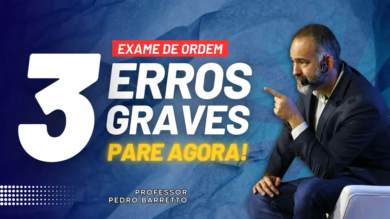 três erros que você não pode cometer se você quer passar na prova da OAB Assiste esse vídeo não pula aqui o que eu vou te contar aqui é de muita avalia Três falhas que se você cometer custaram a sua reprovação bom talvez você não me conheça eu sou o professor Pedro Barreto advogada mais de 20 anos coordenador de cursos preparatórios no Brasil inteiro há mais de duas décadas e Já ajudei mais de 100 mil candidatos a conquistarem essa sonhada carteira vermelha eu quero dividir com você a experiência e te contar aqui três erros que você