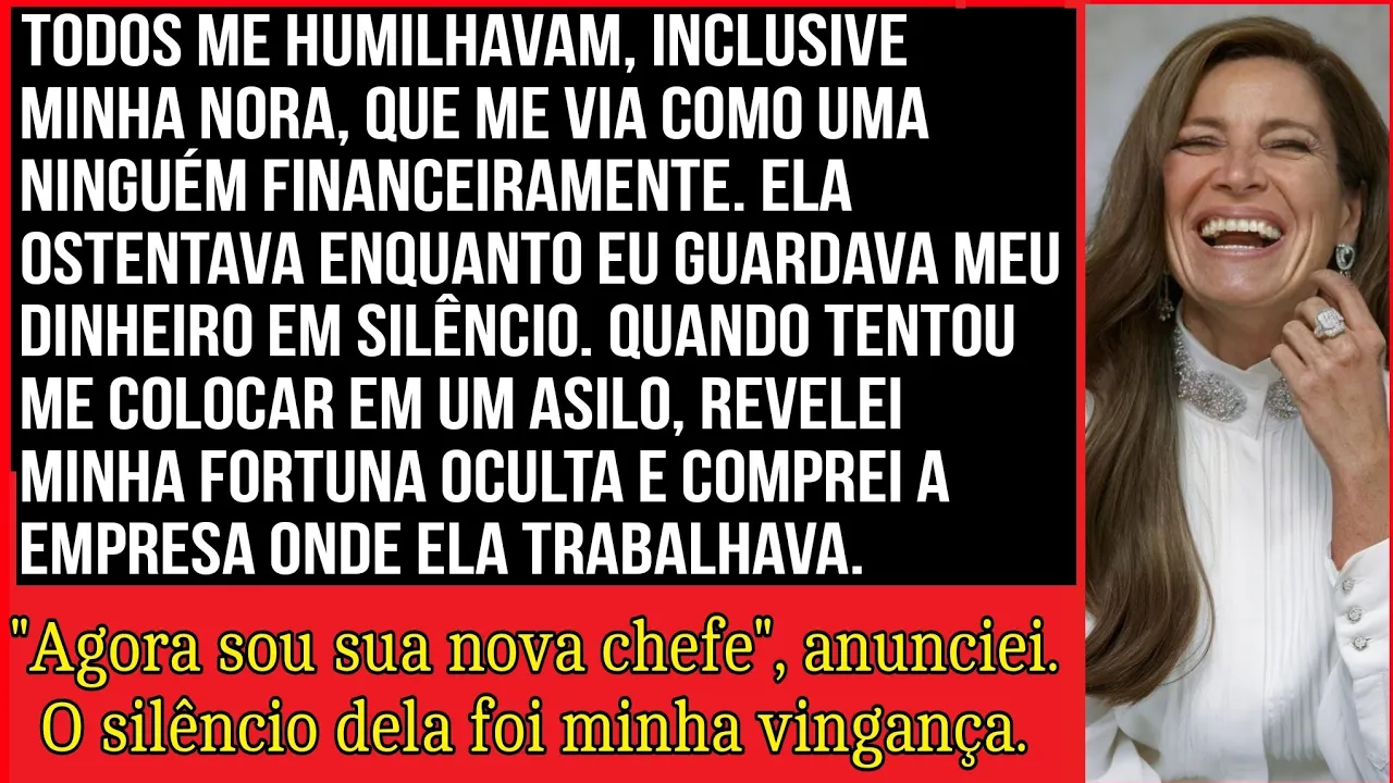 sei disso meu querido filho porque eu sou a nova proprietária da empresa O silêncio que se seguiu foi ensurdecedor Nathaniel e Harold me encararam suas Bocas abertas em choque mudo aproveitei o momento para continuar por 53 anos guardei um segredo um segredo que me corroeu por dentro enquanto eu observava vocês me tratarem como uma idiota Inútil bem deixem-me esclarecer algumas coisas meu patrimônio líquido atual é de aproximadamente Bil a mansão onde moramos minha o carro de luxo que Você dirige Harold meu as generosas mesadas que vocês achavam que estavam me dando eram centavos Comparados ao