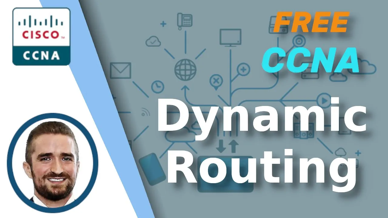This video will start a series of videos on dynamic routing. ‘Dynamic routing’ is in contrast to ‘static routing’, which we covered in Day 11 of this course. Static routing involves manually configuring routes to each destination with the ‘IP ROUTE’ command.