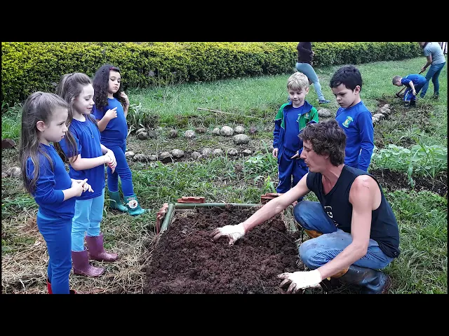 E aí é reunir as crianças né para ter esse contato direto com a natureza principalmente mais direcionado a horta com a terra mexer com a terra encontrar aliás minhoquinha sujar as mãos sentindo O cheirinho da terra plantar as sementes são momentos riquíssimos que elas adoram que elas compartilham depois com suas famílias e para escola isso assim é fundamental ter essa horta e poder sentir o gosto das crianças está vivendo esse momento e também levar para suas famílias com algum espaço físico disponível e o desejo coletivo é possível construir uma horta na escola na prática o
