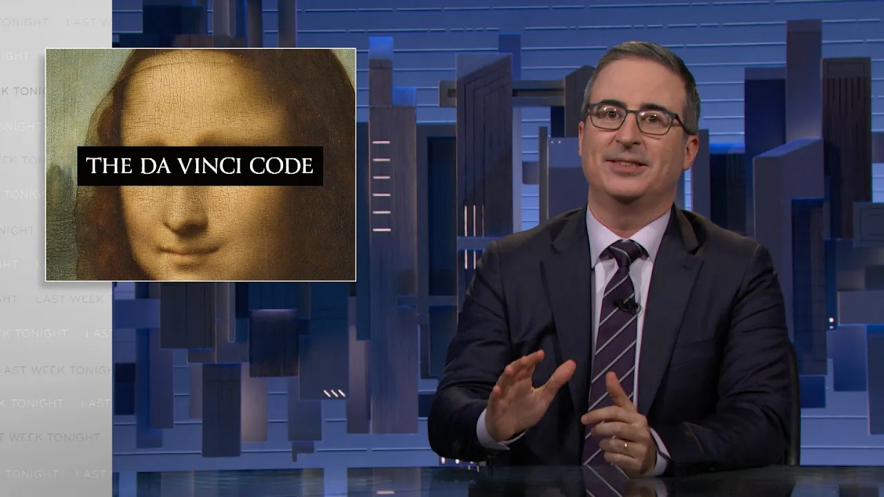 hello there internet uh i'm john oliver our show is on hiatus right now so i'm coming to you straight from youtube the world's most dystopian video hellscape before tick tock and i'm here because i want to talk about something near and dear to my let's say heart and that is the da vinci cult the 2003 dan brown novel about solving art crimes hornerly and the subsequent 2006 ron howard film that it spawned and believe me i already know what you're thinking you're thinking i'm riveted and i don't need an explanation as to why you're talking