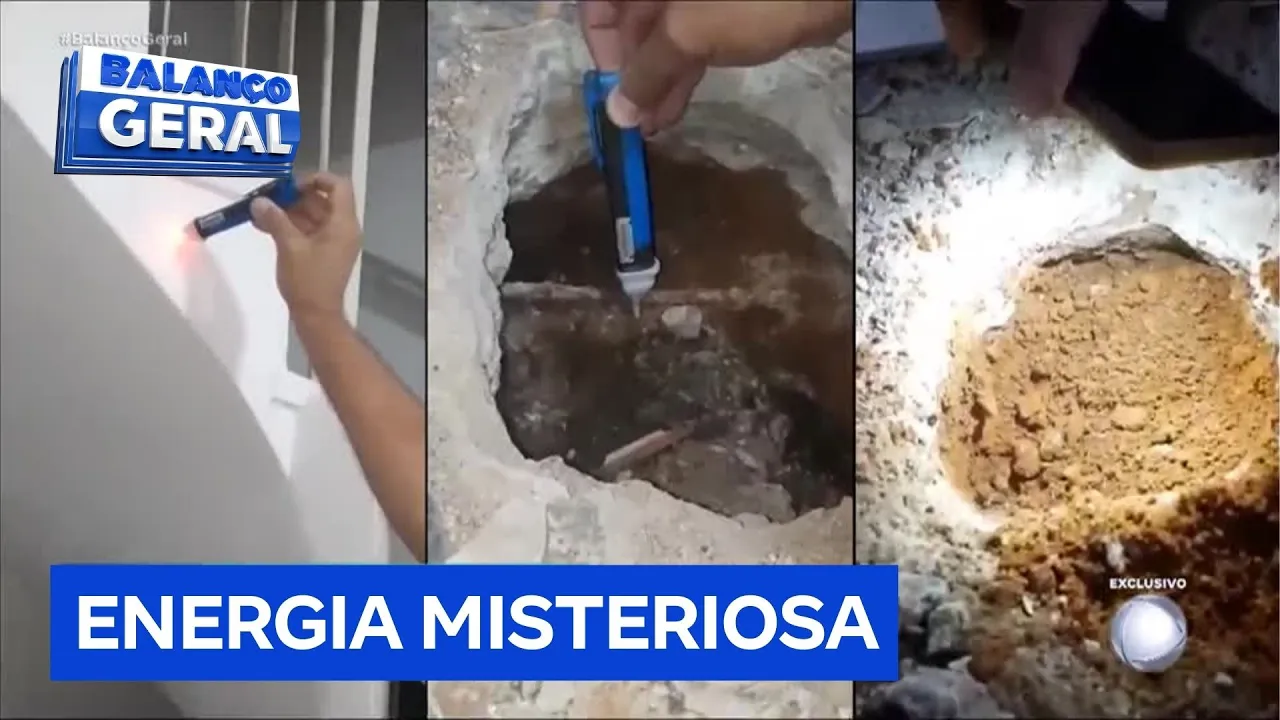 que está acontecendo nessa casa e nas demais casas desta rua reportagem misteriosa balança vamos lá um buraco no meio do chão da sala um mistério Ronda esta casa a família está com medo o chão onde todos pisam de repente ficou quente alcançou os 40º e as paredes dá só uma olhada isso é condução de energia a caneta de tensão elétrica revela está eletrizada desligado tudo desligado a energia da casa alguma coisa está errada por aqui na parede no ferro de estrutura que sustenta a casa tudo tem eletricidade tá gravando no corrimão cuidado com o choque