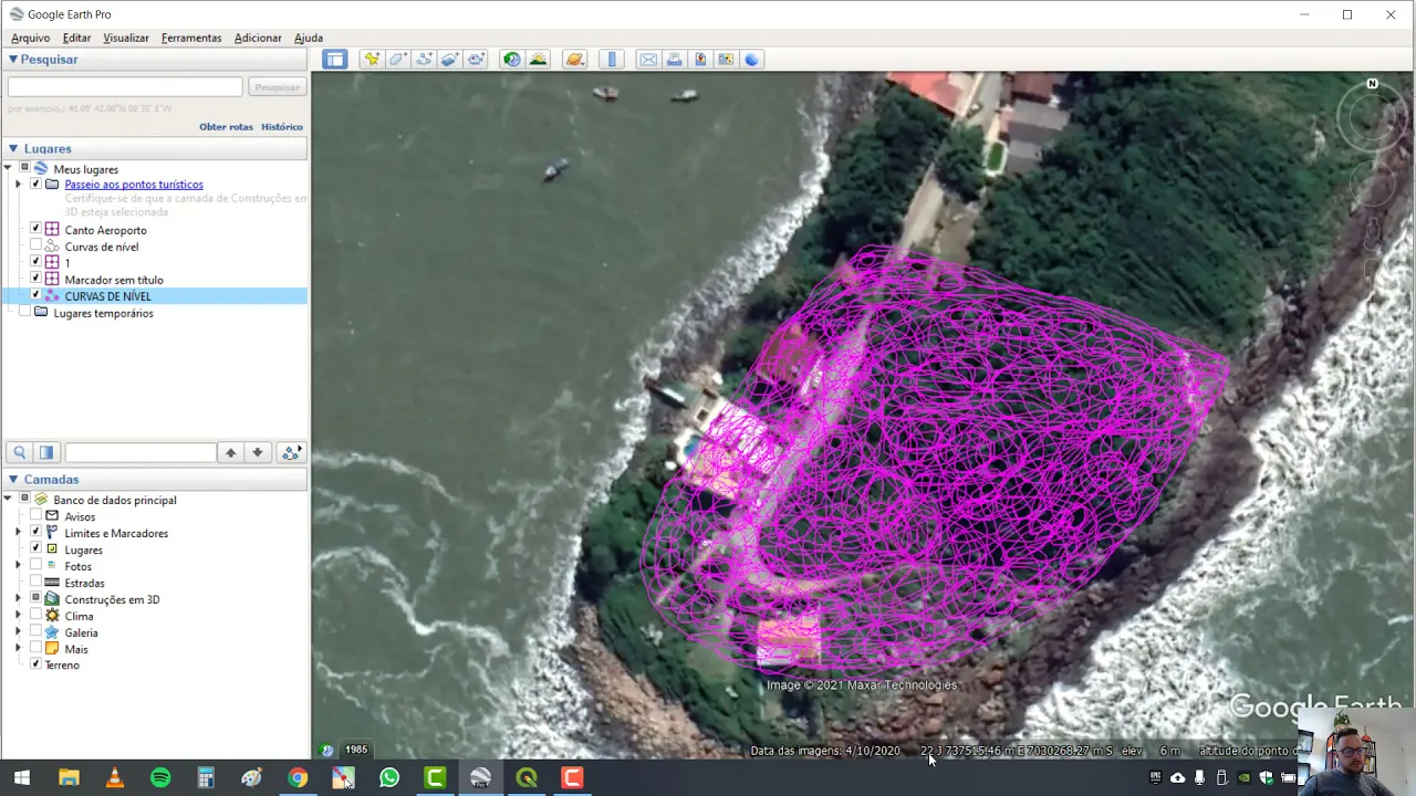o Olá pessoal para o senhor Jean cargo a tô gravando esse vídeo para mostrar para vocês a obtenção das curvas de nível e um terreno utilizando o Google Earth e o que diz certo exportando elas georreferenciados posteriormente para AutoCad muito bem é o primeiro passo é fazer o download do que disse tá então vou mostrar para vocês aqui estou procurando aqui no Google aqui ages download baixar o que disse Tá certo software brasileiro escolha uma esse ele é 32 64 na máquina de vocês sugiro baixo a sempre essa versão aqui o lançamento de longa duração certo no momento desse vídeo e de ar 23 de Março de 2020 um é isso dá uma versão 3. 16 certo então escolha um E 64 ou 32 a máquina de vocês faça o download muito bem à o segundo passo é baixar o Google Earth certo Google Earth no Google certo se vocês têm aqui links aí entra aqui no terceiro 20 o download do Google Earth baixa ele tá E aí é só concordar aqui fazer o download e instalar o AutoCAD todo mundo já possui a maioria dos casos aqui tá trabalhando com essa situação ah eu tô com eles todos instalados já então Primeiro passo é Abrir o Google Earth e a buscar o terreno que vocês querem extrair as curvas de nível certo bom então vou escolher um terreno na Cidade de Penha aqui na no litoral catarinense rodando zoom aqui no mapa para encontrar pegar um terreno aqui que tem um desnível um pouquinho mais acentuado a na beira da do mar para vocês compreenderem bem as curvas tá então esse terreno aqui na esquina ele tem uma ruazinha aqui para Rua finaliza certo entrou trabalhar nesse terreno dessa região aqui bom então primeiro passo aqui no Google Earth visualizar redefinir inclinação e bússola na para o terreno ficar perpendicular aqui com a com a visão ele automaticamente alinho Norte para cima na e vamos utilizar aí a ferramenta caminho adicionar o caminho a terceira aqui então clique posso nome a ela curvas de nível eu posso trocar a cor aqui no estilo cor Vou botar aqui uma ajeita e a E agora o que que a gente vai fazer eu vou pintar aqui a região do terreno com o máximo de pontos que eu consegui tenho clico e seguro aqui o meu meu mouse surgiram vocês pegarem um pouquinho mais do que o terreno não tenho como terreno ali na esquina vou pegar essa área aqui Tá certo eu vou fazendo a pintura que com o botão esquerdo do mouse e é pressionado de todo-o-terreno o mais detalhadamente possível certo é tão interessante que vocês gastem um pouco de tempo aqui detalhando bem mas você pode voltar passar pontos é E no meio aqui eu estou iniciando aqui com o contorno depois vou fazer na outra direção um certo controle fica feito agora vou fazer aqui na outra direção o mais detalhado possível série A E adiantar o vídeo aí um pouquinho para vocês não ficar entediados verifiquem Aonde tá faltando pontos aqui melhora a resolução da malha é interessante pessoal que não fique ponto solto tá então faço uma malha é com um formato bem definido e aqui ficou um ponto solta eu posso arrastar ele puxar para dentro E aí é uma coisa para não ficar nenhum ponto solta a minha amada sabem Pintadinha deu um OK e aqui ela criada agora eu vou exportar essa área tá de pontos cada ponto que foi colocado ali não é correr corresponde aí é um ponto de latitude e longitude aqui o Google Earth vai exportar para a gente eu tô trabalhando aqui em coordenadas do TM pareceram São coordenadas métricas Então se vocês quiserem deixar também ferramentas opções é mostrar a altitude Longitude universal transversa de mercartor deixei essa opção aqui marcada e cortando as curvas botão direito em salvar lugar como certo vou salvar aqui como curvas de nível kmz na minha área de trabalho tá nosso trabalho aqui no Google hoje por enquanto finalizou próximo passo agora é a gente adicionar a altitude neste documento né neste arquivo onde contém o posicionamento x e y aqui das coordenadas Por que o Google Earth não faz isso né Ele não carrega altitude aqui no no arquivo kmz Então a gente vai usar um site tá que se chama o GPS visualizer tão GPS visualizer/Elevation GPS visualizer/Elevation eu clico e o carregar o arquivo que exportamos do Google Earth aqui ó upload files as curvas de nível carne Zé Tá certo e vou selecionar aqui embaixo a opção plantaste a eles largarem em texto aqui e vô é clicar aqui em convert e adicionar ele elevação a converter adicionar a elevação da um click e ele vai processar o nosso arquivo como tem bastante o ponto para demorar um pouquinho o que que ele fez ele colocou aqui latitude e longitude e cada pontinho de latitude longitude a sua respectiva altitude como a gente está bem próximo do Mark altitude bem baixinha né Mas podem ver que os pontos tem uma variação bem grande aqui de O que é altitude porque o terreno é bastante desnivelar muito bem clica aqui em cima download data em Salvar esse arquivo ele vem ponto TXT vou trocar aqui só vale como curvas de nível Ah beleza então primeira fase do processo está completo na escolher o terreno fazer a pintura da malha aqui uma ferramenta caminho dentro do Google hoje Entrar no GPS visualizer e converter esse arquivo para um arquivo de texto muito bem os próximos passos agora sabe e é abrir o que gesso então depois de vocês instalarem o registo quando você fizer a busca aqui no Windows lá que disso ele vai abrir duas opções só que gis desktop 3. 16 quer versão que foi baixo que eu baixei né e vai abrir a mesma versão o strass Rosa um pudim certo então pra gente conseguir exportar as curvas de nível para o Autocad com a sua respectiva altitude né cada curva na sua respectiva altitude a gente tem que usar esse plugin graves aqui então vocês vão abrir essa versão que eles desktop o 3.