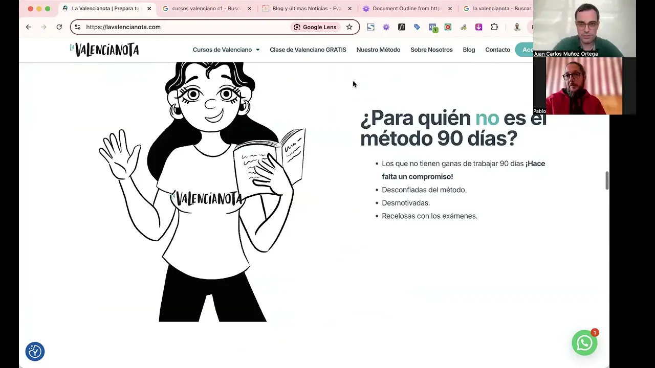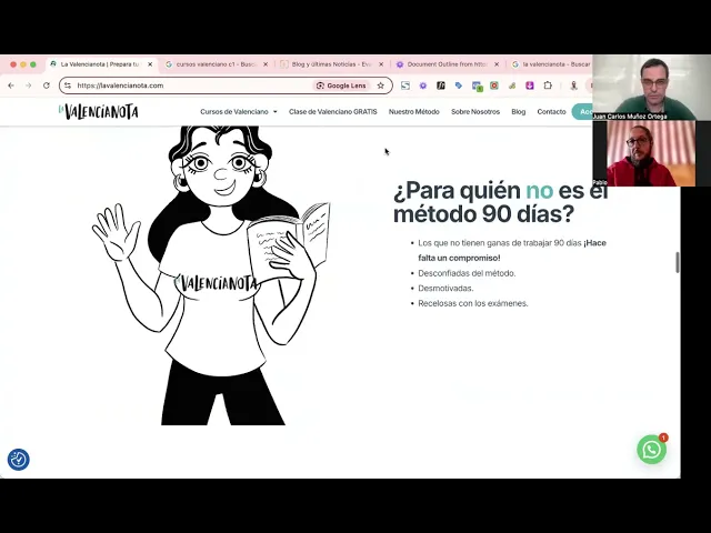 b2 pero no nuestro nuestra movida es el c1 el el C2 de valenciano intensivo lo tenemos pero pero pero tenemos muy poquitos alumnos ese va a estar va a estar ahí o sea lo vamos a tener o sea b2 c1 y C2 lo vamos a tener pero ahí en cursos de valenciano pero en la Home y todo eso no van a aparecer vale Y aquí el atur ritmo y el intensivo se van y se quedará el premio vale clase de valenciano ta ta tal Este es el magnet correcto nuestro método sobre nosotros ter ti vale