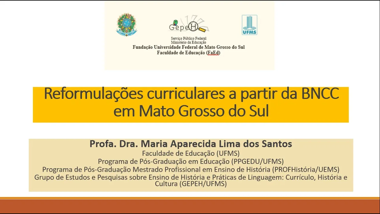 esse processo processo de produção e implementação do currículo local a partir da da bncc E aí E aí e é eu ensino de história no currículo referência Mato Grosso do Sul como é que ele ficou né então é uma coisa que é importante nós percebemos aqui o estado ele é um saldo de conformação muito recente né então nós temos no campo da educação como nós já sabemos é uma sempre as coisas são abordados de maneira bastante precária então nós só vamos ter mesmo projeto aí quase praticamente 20 anos depois da inauguração do da criação do