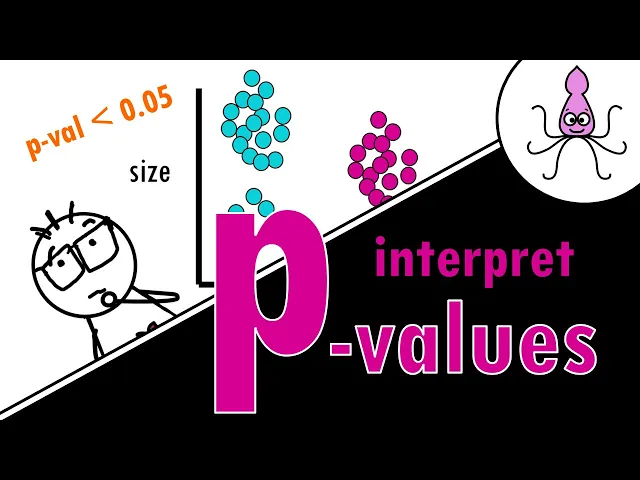 [Music] hello and welcome back to biat squid in this video we will cover how to interpret P values so if you're ready let's dive in okay you are a bias statistician who has embarked on a trip to solve a question that has puzzled Humanity for centuries our female squid bigger or smaller in size than male squid ideally we would get data from all squid in the world or whichever species we are studying but we cannot do that so we need to take a sample from that population and make inferences from that sample that we assume