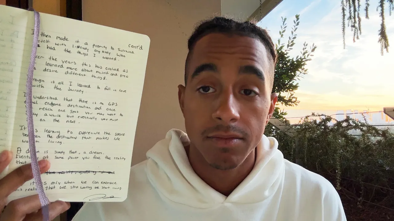 I'm 26 years old I'm a multi-millionaire I took care of my whole family right now I'm here in West Hollywood I just had an amazing night with some of my best friends in the world I am living the life that I had always desired and in this video today I actually wrote something I want to share it with you guys because I want to explain today how I was able to create this life I want to explain this because these are the things that I wish someone explained to me when I was first starting on my journey over 10 years ago and I have the blueprint for anybody who wants to achieve this level of success in their life not just in worldly material things but internally so listen the first thing that I want to talk about in this piece is that I created this life first by defining it clearly in my head in these pages I set my GPS and it wasn't perfect but it was an idea now a lot of you guys want to become successful but you have never even put a definition on what success is for you okay sure you might say hey I want to make a million dollar but what what are you doing how are you making that money what does your life look like where are you living who are you living with do you have a girlfriend do you have a car what color is the car what type of clothing do you wear you don't have any idea of where you're trying to go and with that you'll never be able to go anywhere I'm using my phone to record this video but I actually have a note on my phone and it's scary it's actually scary how accurate I was able to predict and then go on to create the life that I'm living today in 2020 when I was at my alltime low $30,000 in debt addicted to drugs living the life that I was ashamed of I didn't even want to look at myself in the mirror I even wanted to call the hotline because I was having a bad day like that I was not happy and I remember I crashed out one night and I said listen I'm done with this I want to write this down and I'm going to make this happen and I put out the vision of what my dream life was year by year I put exactly what I wanted to do I put that I wanted to be a YouTuber with over a million subscribers I put that I wanted to have a wife I put that I wanted to take care of my mom I put that I wanted to live in Miami and Los Angeles I put my exact net worth and would you believe me if I said year by year every single thing that I put on this list came true I can't make this up I put things that were so specific that I cannot believe came true I put that I was going to sell my software company for millions of dollars and create content that inspires millions of people around the world when I had no subscribers on YouTube and when my software company was burning $10,000 a month of a hole in my pocket I had the vision at that point in time to say that this is where I wanted to go you have to be very clear about where you want to go and it's to the point where it's not even going to make sense to you it's not even going to make sense that that is even possible for you to achieve it but I I promise you this is the very first step even when I was dead broke when I was a kid when I was 16 17 years old I wrote down an even simpler version of this saying I'm going to be living in my own apartment I'm going to be waking up every single day at 700 a. m. what I did was I put my dream day and this is maybe an exercise that would be fun for you guys to experiment with pull out the notes app write down your dream day what does it look like what car are you driving what type of coffee are you having in the morning what does your dog look like what does your wife look like and write down what the dream day is for you and look at this every single day and compare it to your life and it's going to give you that clear GPS signal of where you want to go the next thing I included in this notebook is that I then convinced myself it was possible by putting one foot in front of the other and accumulating small winds that reaffirmed it can all be done most people start with the first thing that I said actually a lot of people have vision boards and notebooks and manifestation journals that's great but what are you actually doing to achieve that thing I'm not the guy that's going to tell you yo wake up at 5:00 a.