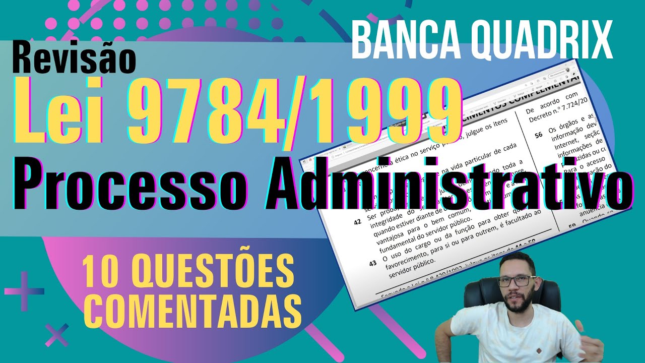 é muito Bem pessoal vamos agora estudar a lei 9784 de 1999 essa lei que trata do processo administrativo no âmbito da administração pública federal é uma lei habitualmente exigida para concursos públicos federais mas ela também aparecem alguns concursos estaduais e municipais porque a maioria dos estados e municípios do Brasil não possuem sua própria lei que trate de processo administrativo alguns possui mas a maioria não então em razão disso esta lei acaba sendo aplicada é pra vários estados e municípios para tratar do processo administrativo processo administrativo que pode ser muitas coisas quanto faz um requerimento em