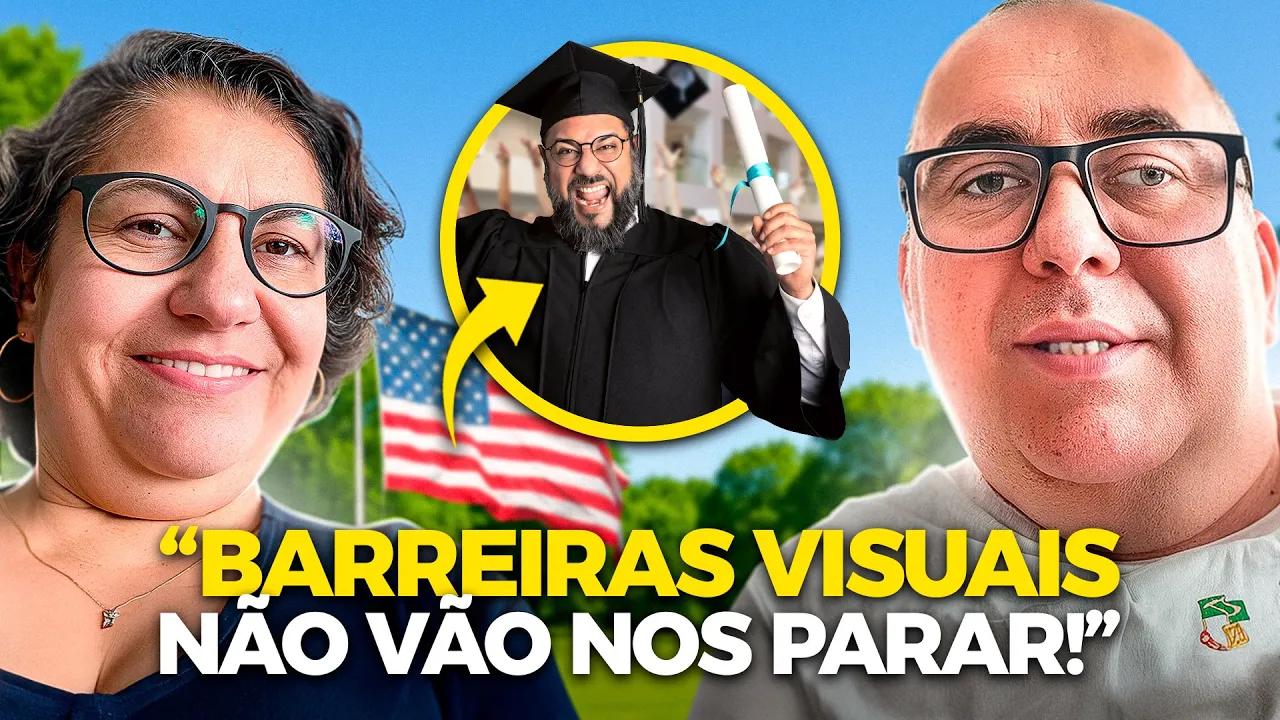 Que que dois ceguinhos que não dirigem vão fazer nos Estados Unidos? Como é que a gente vai se virar? Óbvio que não é como você está lá na embaixada, lá no consulado. É sinistro. É, é esquisito mesmo. Assim, seria Orlando. Mas e aí? Orlando como Orlando para duas pessoas que não dirigem, a gente impossível, inviável, não tem jeito. Nós preferimos nos arrepender daquilo que nós tentamos de conquista, né? É que se o processo Não é barato, não é fácil, é extremamente desgastante, a gente teve que abrir mão de muita coisa em prol disso. É um