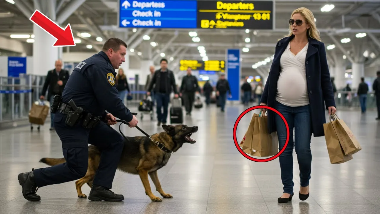 the dog's Behavior felt off then she appeared a tall blonde woman moving slowly through the crowd balancing two paper bags in her hands her pregnant belly pressed against the white blouse beneath a dark navy coat clearly in her final trimester her name was Marlo Ashford and everything about her seemed carefully constructed oversized sunglasses too dark for indoor lighting Flats chosen for comfort her face calm too calm for a place filled with hells and goodbyes but the second Bishop laid eyes on her everything shifted he froze then growled and then He barked loud sharp Relentless not