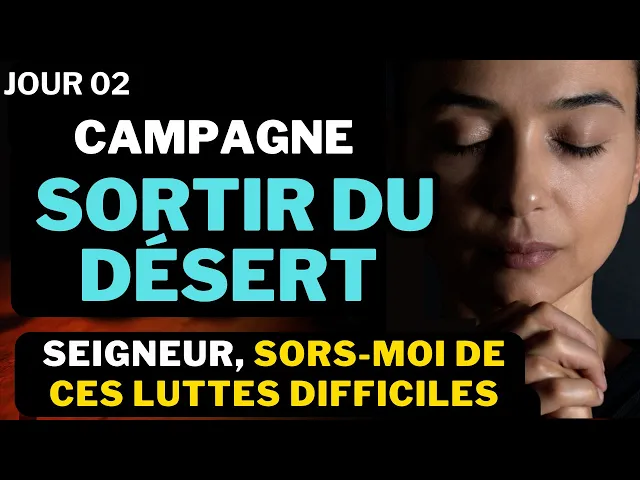 Seigneur notre Dieu et notre cher et bien-aimé père Seigneur en ce jour en ce deuxè jour mon père de cette campagne sortir du désert mon Dieu je veux prier pour ta fille je veux prier père pour ton fils et je veux déclarer mon Dieu je veux prophétiser que la faiblesse l'usure le découragement mon père mon Dieu céderont la place à la force mon Dieu enlève père repousse toute faiblesse tout découragement toute usure toute pensée père d'arrêter d'AB qu'elle soit repoussée qu'elle tombe à terre qu'elle ne prévaille pas ne reste pas debout mon Dieu qu'en ce