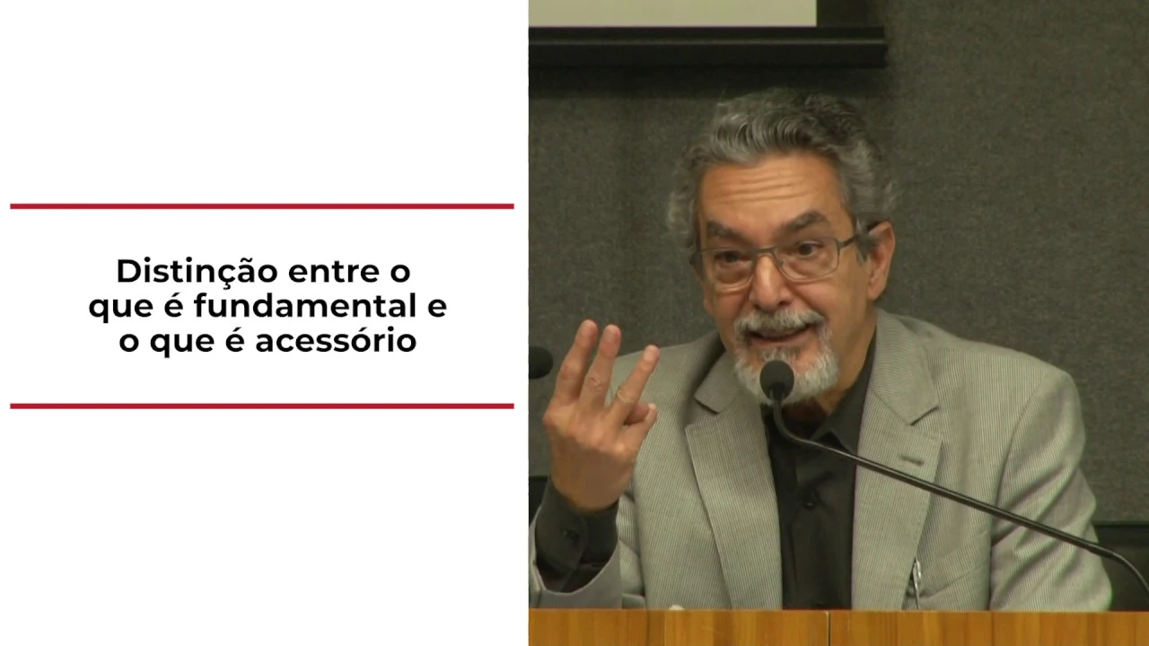 perdemos o discernimento na distinção entre o que é fundamental e que é penduricalho que é acessório em qualquer matéria uma ideia que seja realmente fundamental só te três características fortes que é fácil a gente identificar aquilo que é fundamental eu consigo explicar a importância do significado apenas com a linguagem ordinária se eu já preciso de uma linguagem técnica sofisticada para poder explicar o significado ea importância do assunto não quer dizer que eu não pense nesse assunto mas esse assunto já não é fundamental segundo critério teste do isolamento eu to ponha esse assunto não põe assunto