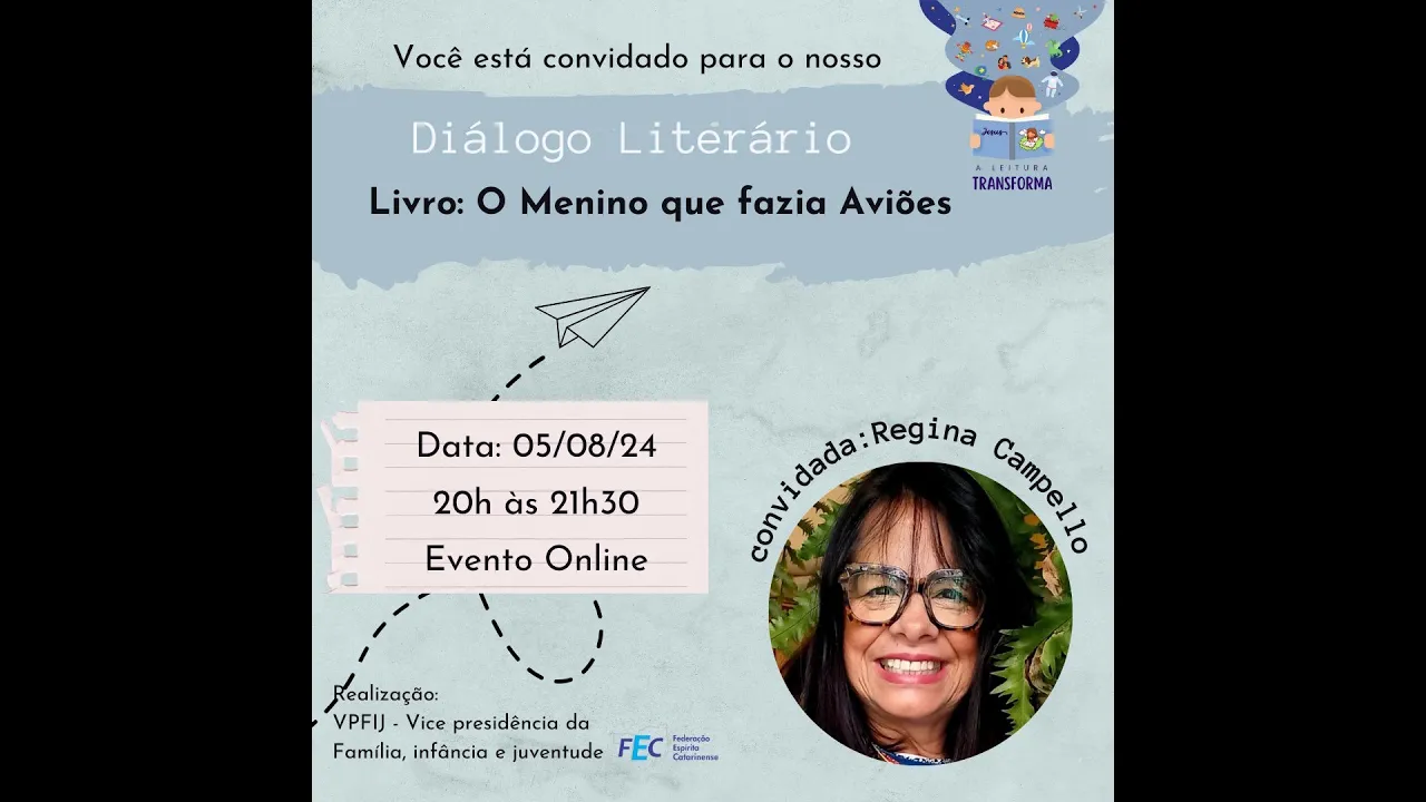 livro né que é o menino que fazia aviões e nós temos muita alegria de ter aqui os nossos evangelizadores os Nossos trabalhadores que já se tá tornando um evento né tradicional e Isso demonstra o interesse deles em conhecer né a o livro e também as inúmeras possibilidades de explorar este livro junto às evangelizações ou as crianças né que tem junto a si então queridos amigos que seja um evento belíssimo né para todos nós e muito obrigada por todos estarem aqui e agora então eu passo aqui a palavra né paraa nossa nilka Boa noite a todos