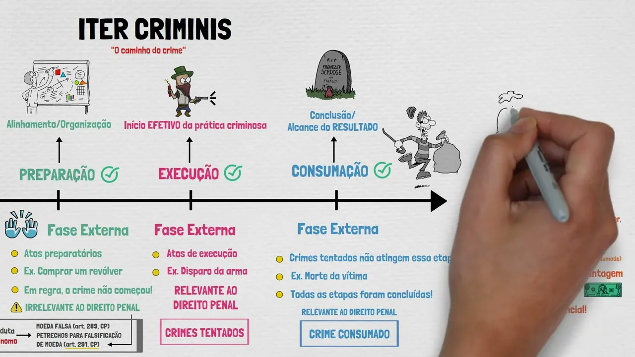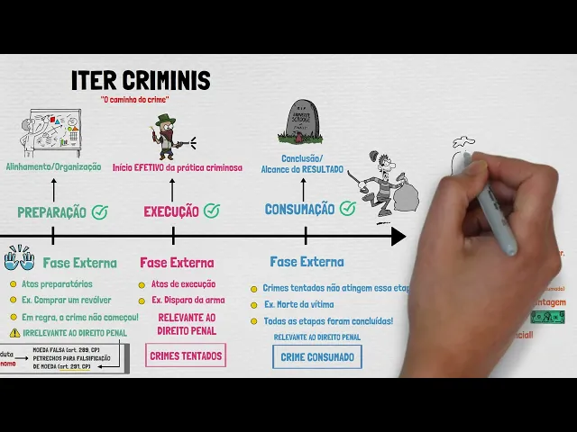 Oi turma bem-vindos ao meu canal eu sou a Ana e hoje vamos dar continuidade aos nossos estudos falando um pouco mais sobre intercrimes antes de iniciarmos não se esqueça de se inscrever aqui no canal deixar o seu like nesse vídeo e claro compartilhar muito o nosso conteúdo o feedback de vocês é super importante para continuidade do canal e vamos à aula em Direito Penal denominamos e ter crimes o caminho percorrido pelo agente quando praticam delito assim o sujeito ativo percorrerá o seguinte itinerário primeiro teremos a fase da cogitação após o agente iniciar a preparação em