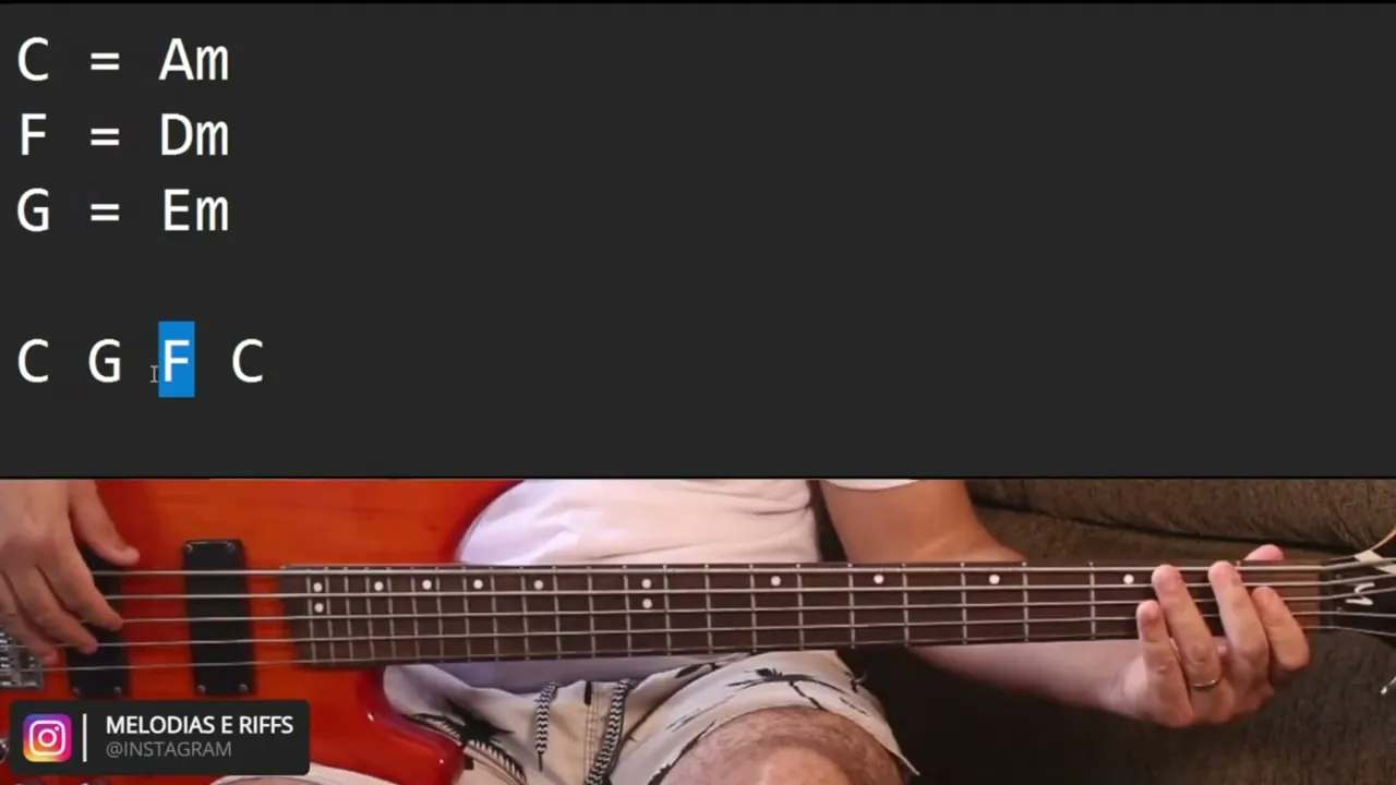 lá menor você pode fazer todas as frases que você aprendeu lá menor mas também todas as frases em dó maior Ou se você tiver tocando um hino e aparecer um acorde de fá maior você pode usar todas as frases que você aprendeu maior Mas também você pode aplicar todas as frases de ré menor você aprendeu também em cima do fá maior Ou vice-versa se você tiver no acorde de ré menor e você precisar criar alguma frase você pode usar todas as frases de ré menor que você aprendeu ou todas as frases em fá maior que