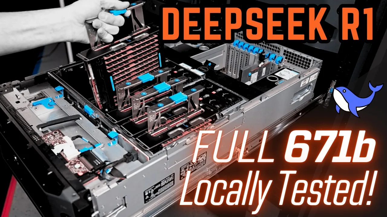 today we're going to be covering running the full 671b locally let me be the first to say this is very likely not the ideal way to run this I'm going to talk about some of the strengths some of the weaknesses of course you can use the chapters below at any point in time to skip around we've got a little bit of time here as it loads this into system Ram because we are going to be running this based on CPUs today I'm going to talk about some of the issues that I've hit and hopefully if you're in the audience and you're technically inclined you can drop a comment below and let me know about that also we're going to briefly super briefly talk kind of at a high level about some of the stuff that has dropped that we're seeing I know this is causing a lot of commotion in markets today deep seek is being credited with a big hit to the stock market and I think most of it is really overstated they're jumping the gun to we need less gpus basically is what it comes down to and at the end of the day deep seek did disclose how they did almost all of this in their paper because it's open source a lot of people are uh also not necessarily drawing the straight line that is this is the pathway we are on towards getting AGI and probably super intelligence in the future is open source and the reason why is because the feed forward impacts of that and using that and those feed forward impacts is accelerating they're disclosed new methods for speeding up their inference by really reworking some of the low-level code on the Nvidia stack has really accelerated their ability to pipeline out answers that's something they disclosed other companies are not going to be using that what if this is it what if this is AI in my garage well that's why we're testing we're going to find out if this is Agi in the garage if it aces every one of these we've done it boys pack it up AGI in the garage that'll be it uh let's see we are at currently 11. 7 224 Gigabytes of system Ram that is in the r930 now R 930s are freaks because they have 96 I believe dim slots in them they have eight cartridges 12ish or something like that uh dim slots per each one and then you rack those in Quad 8890 V4 yeah so these dudes here these were $7,000 CPUs back in their Heyday in 2016 still rompers today let me tell you 24 quarters 48 threads 3. 4 uh is their Max frequency boost and it cost like 35 bucks on eBay so an entire system including Ram that's 1.