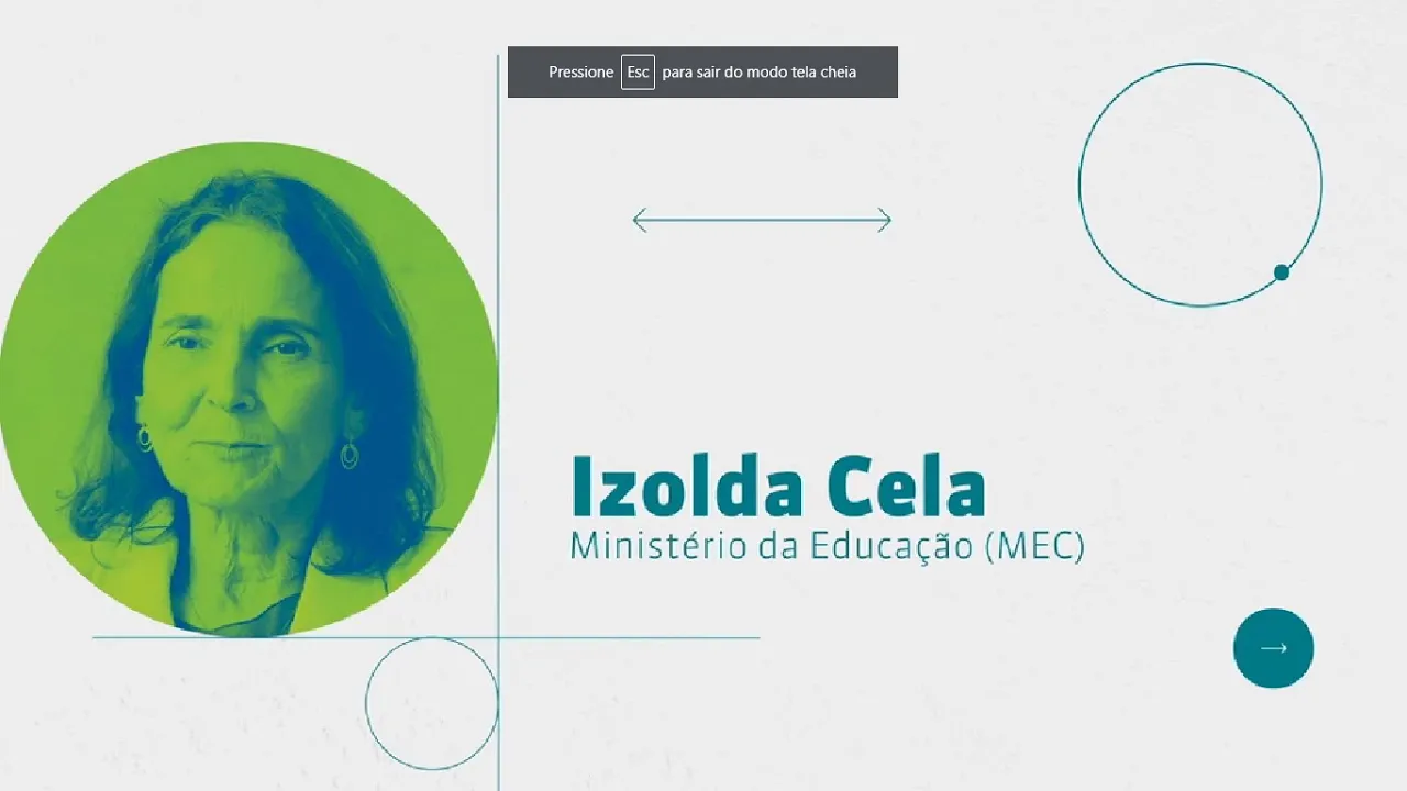 [Música] eu sou a Isolda cela Sou professora Sou professora de Psicologia de uma Universidade Estadual do Ceará tem uma trajetória na educação pública iniciando pelo Município no município de Sobral depois também uma oportunidade muito rica de boas experiências e aprendizados na Secretaria de Educação do Estado do Ceará e agora eu estou na secretaria executiva do Ministério da Educação o desafio de melhorar a educação brasileira é uma convocação para todos nós para toda a sociedade praticamente 85% como média das crianças e dos jovens brasileiros estão nas escolas públicas pelos municípios pelos mais de 5 mil municípios